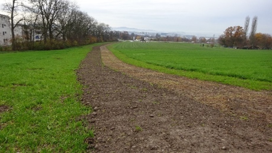 Une nouvelle construction a dû être réalisée pour remplacer la conduite d'eau de transport Ruebisbach à Kloten. Sur une longueur d'environ 500 m, le tracé de la conduite traversait des terres agricoles ouvertes, qui étaient en grande partie classées en tant que surfaces d'assolement (SDA). Pour traverser le Rousbach et la Weinbergstrasse, deux tronçons d'environ 15 m et 60 m de long ont été réalisés au moyen d'une conduite forcée. Une fosse de départ et une fosse d'arrivée ont dû être réalisées à cet effet. La construction des conduites ainsi que les zones temporairement sollicitées pour les emplacements d'installation, les pistes de construction et les fosses de départ et d'arrivée ont touché de grandes surfaces de sol. Afin de garantir une utilisation appropriée du sol et une remise en culture correcte, l'autorité compétente en matière d'autorisation a donc exigé la mise en place d'un suivi pédologique de chantier (SST). Le BBB d'Ecosens AG a accompagné le projet de manière compétente pendant les quatre mois de la phase de construction et a procédé à différentes clarifications et enquêtes. De plus, le tracé de la ligne traversait de manière inattendue une ancienne décharge d'ordures inconnue jusqu'alors, ce qui a entraîné d'autres défis. Grâce à une bonne collaboration entre tous les acteurs impliqués, le projet a pu être réalisé avec succès et dans le respect de l'environnement.